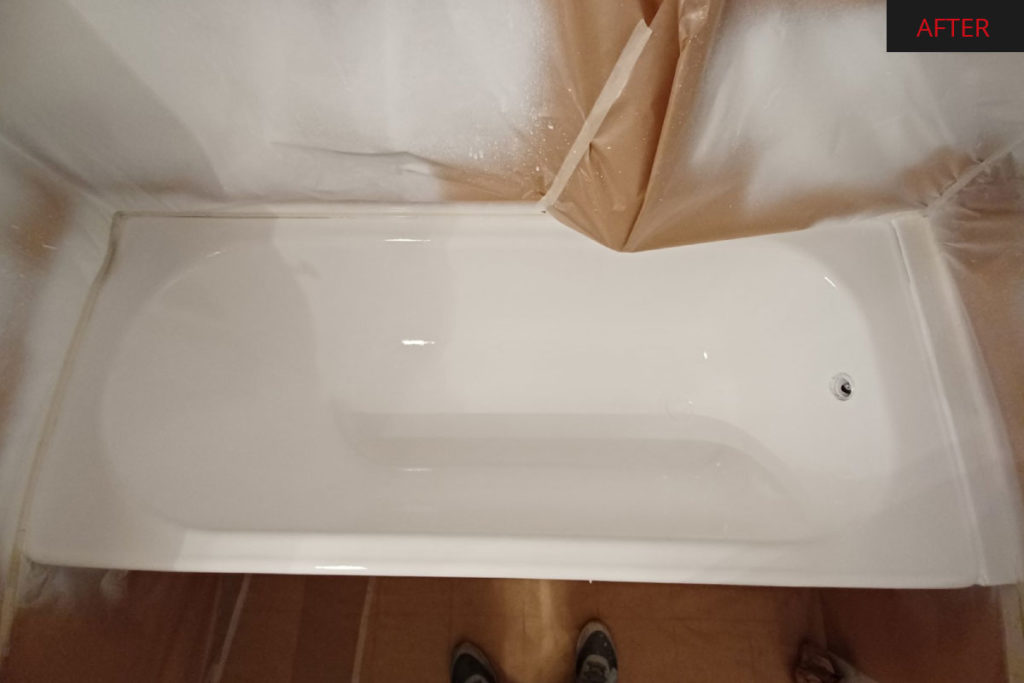 The new coating on the worn enamel, a layer of resin enamel with polymer porcelain base will give your bathroom in addition to a renewed look and the protection it needs.